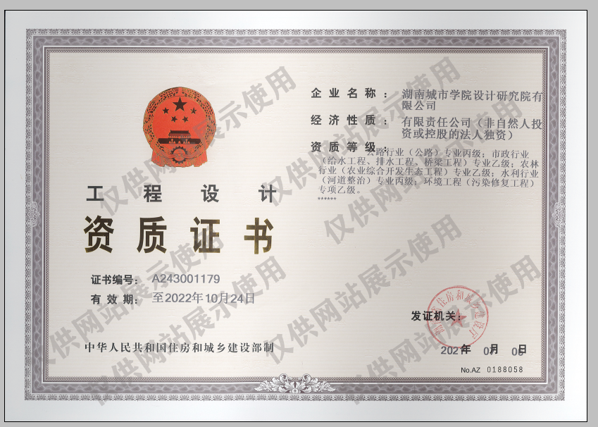 7月9日,经湖南省住房和城乡建设厅核准,乐动网页版_乐动(中国)设计研究院有限公司申报的水利行业(河道整治)专业丙级资质成功获批。