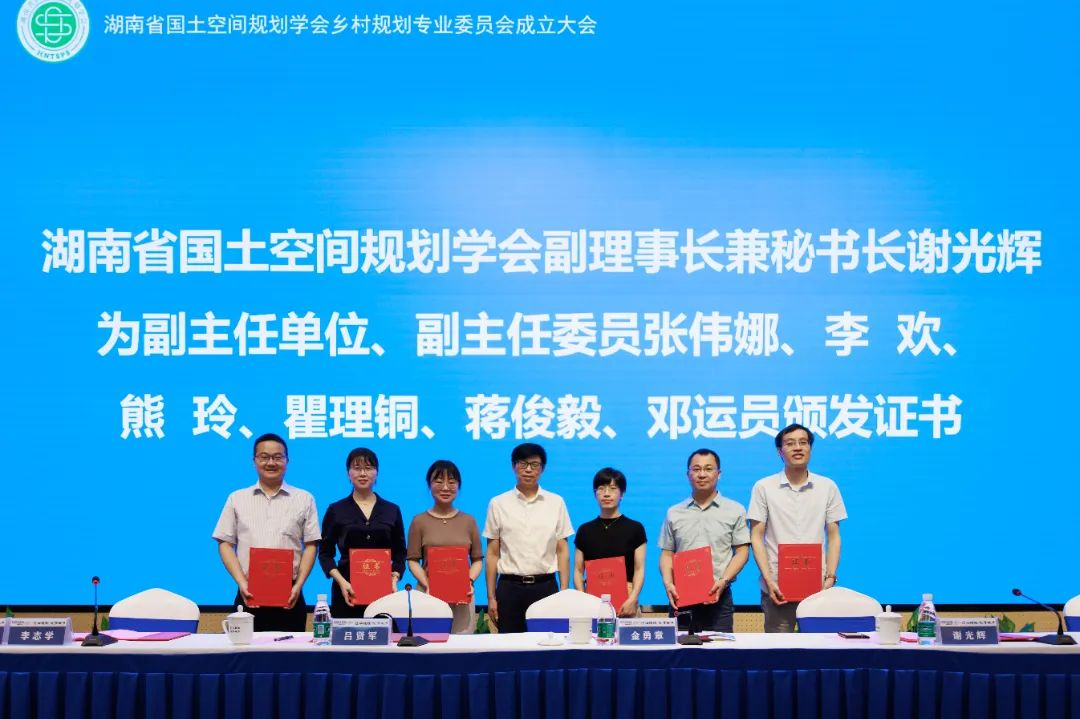 会上,谢光辉宣读了湖南省国土空间规划学会《关于乡村规划专业委员会组成人员的通知》。设计院为主任委员单位、院长李志学为主任委员。会议对主任委员、副主任委员、委员单位和个人授牌授章和颁发证书。