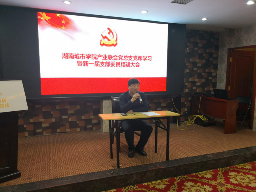 25日上午8::30在吉首酒店会议室举行了乐动网页版_乐动(中国)产业联合党总支党课学习暨新一届支部委员培训大会。学校党委委员,副校长谭献良为全体党员上党课——“怎样抓好党建工作”,产业联合党支部书记王正安组织学习《中国共产党工作条例》,会议由产业处处长熊创贤同志主持。