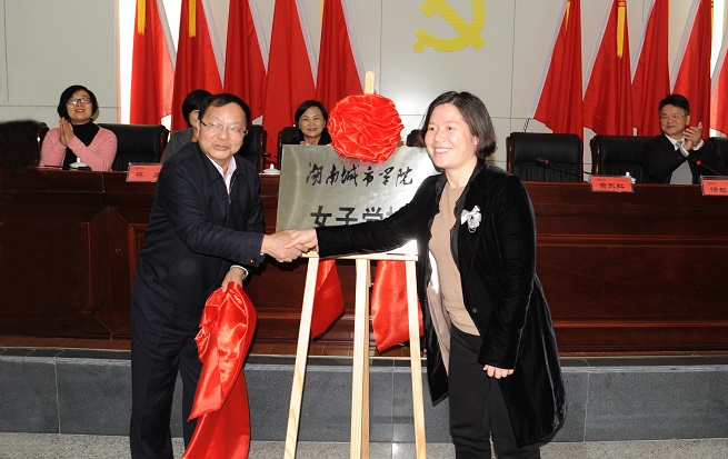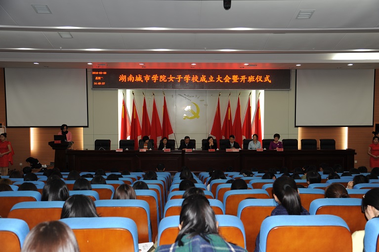(本网讯)3月8日下午,我校女子学校成立大会在图书馆报告厅隆重举行。我校党委书记李建华、副校长汤放华以及益阳市人民政府副市长黄东红、团省委学校部部长王虹彬,益阳市妇联、团市委、我校团委相关负责人,以及300余名女校学员代表参加了会议。