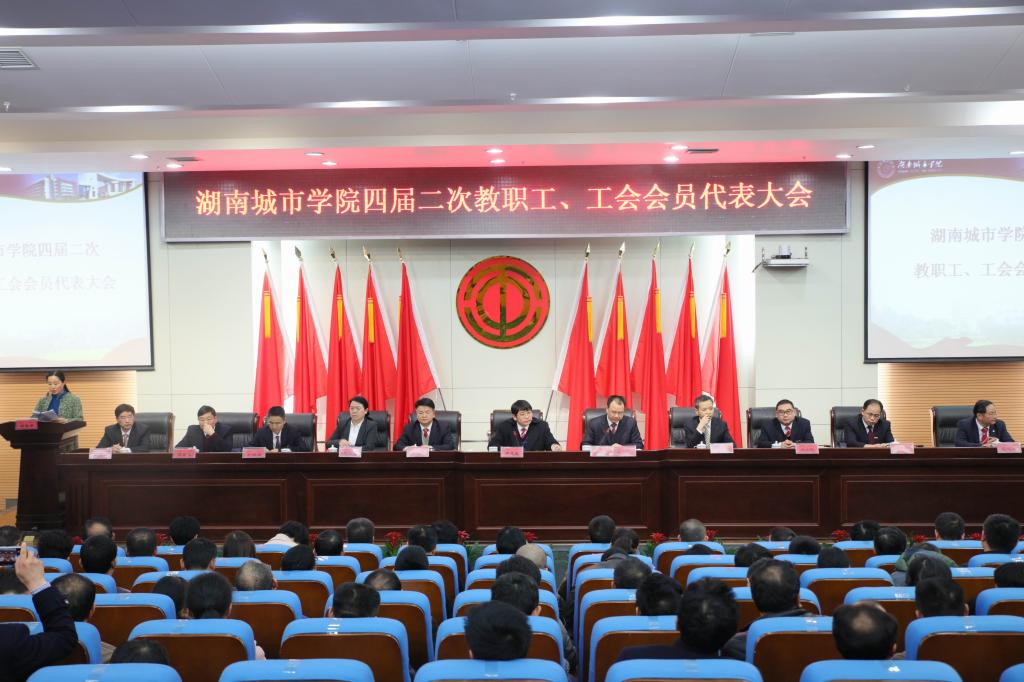 (本网讯)3月31日下午4点30分,学校第四届二次教职工、工会会员代表大会闭幕式在图书馆报告厅举行。会议审议通过了校长工作、工会工作、财务工作、工会经审工作等报告及《乐动网页版_乐动(中国)岗位绩效工资管理办法》,选举了工会委员会、经审委员会委员。党委书记罗成翼在会上发表重要讲话。会议由校长李建奇主持。