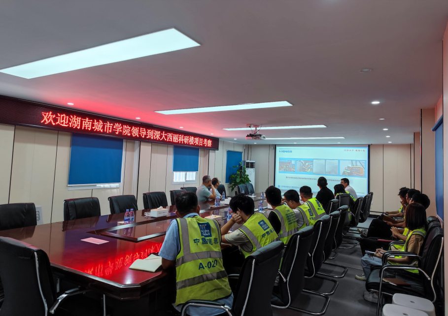 8月24日上午,王正安书记一行赴中建五局华南建设有限公司参观考察深大西丽科研楼项目,项目生产经理张永钰和商务经理颜威(工程管理2014届毕业生)重点介绍了该项目三大目标控制,同时双方就学生就业岗位、学生实习和见习期学生的培养进行了交流与讨论。最后王书记与我校在此项目上工作和实习的同学们进行了深入交谈,勉励大家要珍惜目前的工作机会,珍惜与同事学习提升的缘分,踏踏实实做事、干干净净做人,为祖国的繁荣富强贡献自己的力量。