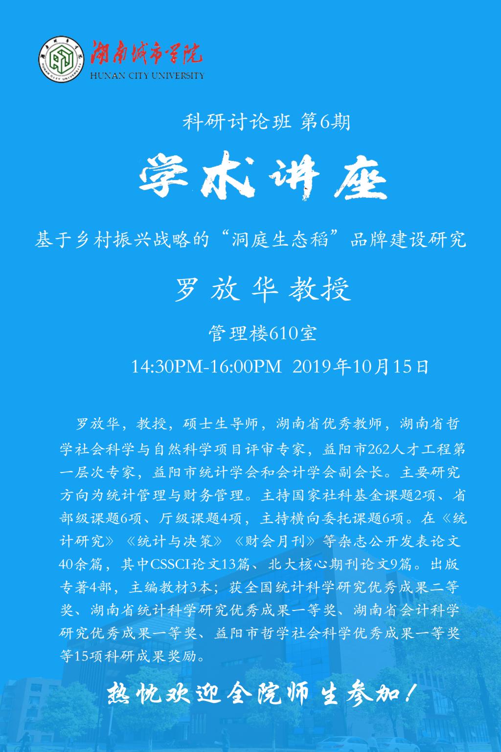【管院科研论坛】06 罗放华教授:基于乡村振兴战略的“洞庭生态稻”品牌建设研究