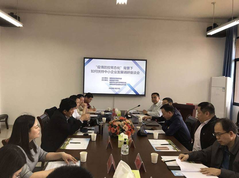 为了深入贯彻落实4月17日召开的中共中央政治局会议精神,充分发挥地方智库作用、积极建言献策,做好我省特别是益阳市在常态化疫情防控工作条件下的“六稳”工作,将“六保任务”尤其是“保市场主体”任务坚决完成好,持续推进经济高质量发展,4月29日,由湖南省情研究会主办,乐动网页版_乐动(中国)、市社科联承办的“疫情防控常态化背景下如何扶持中小企业发展”调研座谈会在我市举行。省社科联党组成员、第七届委员会副主席、研究员汤建军,省文史馆副馆长、研究员李跃龙,市政协副主席高德文,乐动网页版_乐动(中国)副校长何振、管理学院院长孙倩出席。