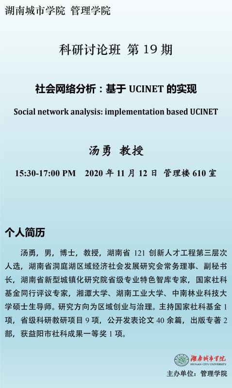 【管院科研论坛】19 汤勇 教授:社会网络分析:基于UCINET的实现