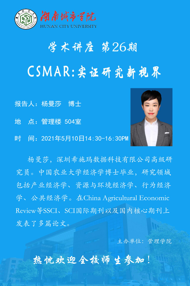 【管院科研论坛】26 杨曼莎 博士:CSMAR:实证研究新视界