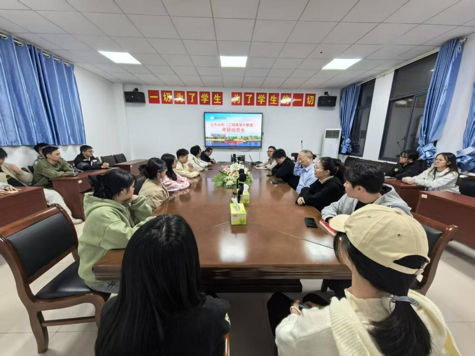 会议进一步结合国家学历提升政策与就业形势进行分析,指出当前就业竞争日趋激烈,高素质人才学历提升已成为重要趋势。本校土木水利专业硕士点与工程管理本科专业高度契合,导师团队经验丰富,能够为学生提供系统的学术指导与实践支持。