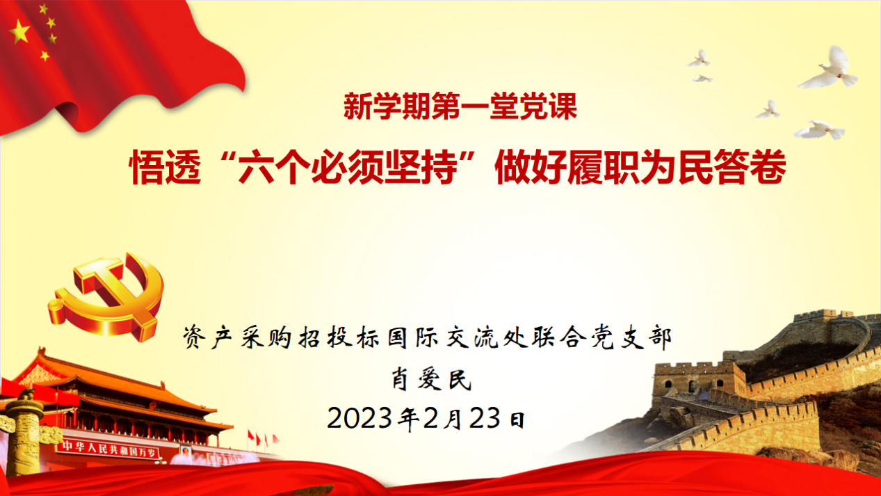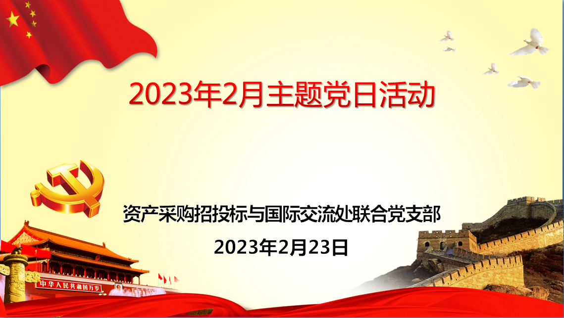 2023223日下午,资产处、采购与招投标管理中心、国际交流处联合党支部在一办公楼131室组织开展了“主题党日”集中学习,党支部书记肖爱民主持,支部全体党员参加。