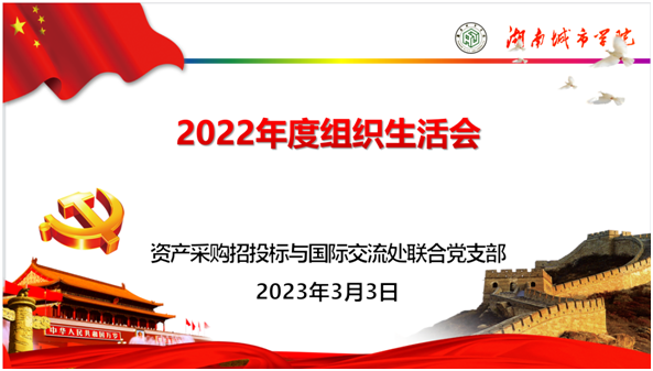 202333日上午,资产采购招投标与国际交流处联合党支部在一办131支部党员活动室召开2022年度组织生活会并开展民主评议党员。会前,全体党员认真学习上级文件精神、开展谈心谈话、准备相关材料和个人发言提纲等准备工作,为开好此次专题组织生活会做了充分准备。支部全体党员6人均到会,会议由支部书记肖爱民主持。